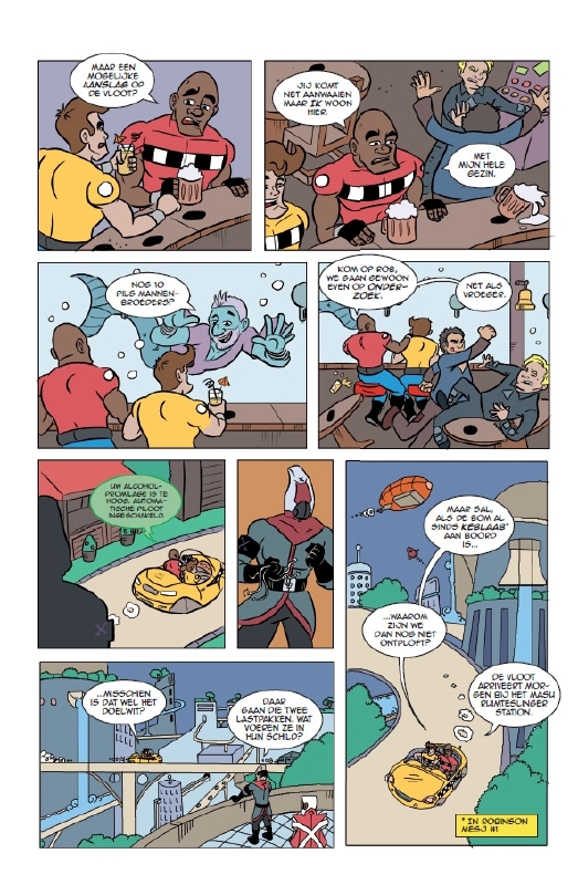 Mesj Media Robinson Mesj vol 2 Robinson Mesj heeft een nieuw thuis aan boord Arc Eden, een nieuwe baan als intergalactische taxichauffeur bij zijn maatje Salomon Mesj, en een nieuwe stamkroeg. Alles lijkt hem voor de wind te gaan. Op één klein dingetje na. Er is een bom aan boord de Arc. Gaat het Robinson en Salomon lukken om de bom op tijd te vinden en ontmantelen? Of zal Robinsons nieuwe leventje letterlijk in rook opgaan? Geschreven door Guido Paulsen (Grayhaven Comics), getekend door Boy Akkerman (Monkeybrain, Image) en kleuren door Juliette Heeren en Lisanne Termoshuizen (Grayhaven Comics). |
