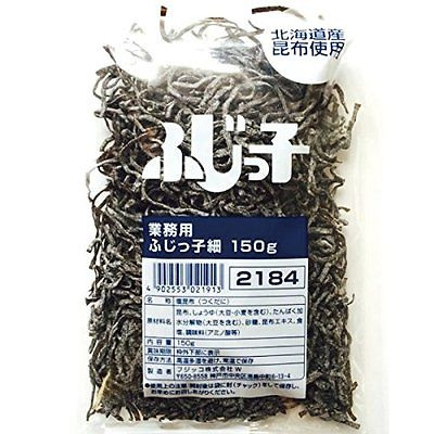 Japanese seaweed Fujikko dark shredded konbu kelp seaweed. Using specially selected konbu harvested in Hokkaido, famous for its delicious seaweed, this fujikko salted konbu kelp has been carefully cooked for maximum smoothness and flavor. Lightly salted, this makes a great addition to salads and pastas.